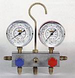 Используется для замеров высокого и низкого давления хладагента. Манометр высокого давления служит для измерения давления нагнетания. Манометр низкого давления служит для измерения давления всасывания. Манометрическая станция может применяться при вакуумировании холодильного контура. |