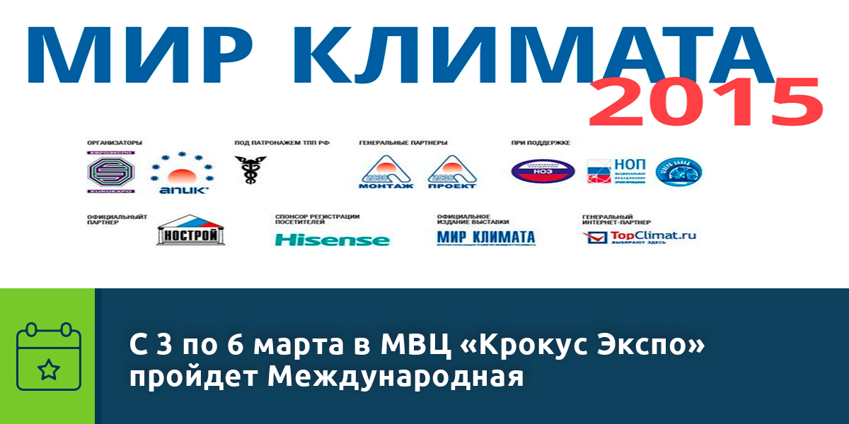 С 3 по 6 марта в МВЦ «Крокус Экспо» прошла 11-я международная специализированная выставка передовых технологических разработок в области производства и внедрения систем кондиционирования, вентиляции, отопления, промышленного и коммерческого холода «МИР КЛИМАТА—2015».