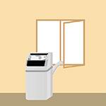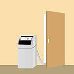 2. Шланг для отвода теплого воздуха выводится в приоткрытую дверь. |
